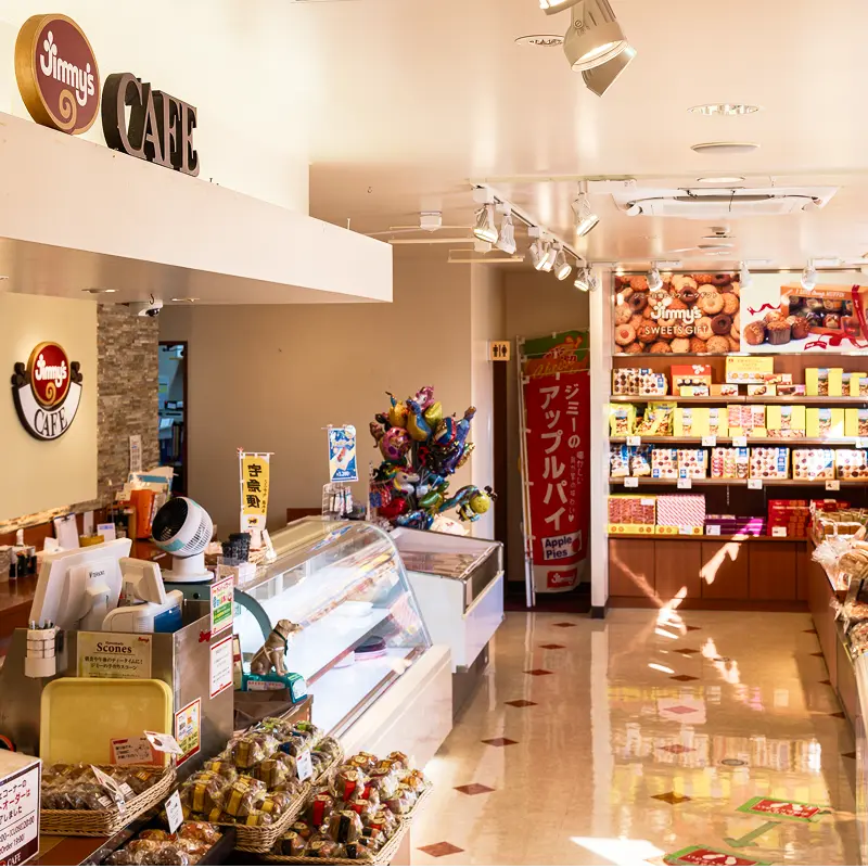 ジミーのケーキやパン、コーヒーが優しいひと時を演出します。